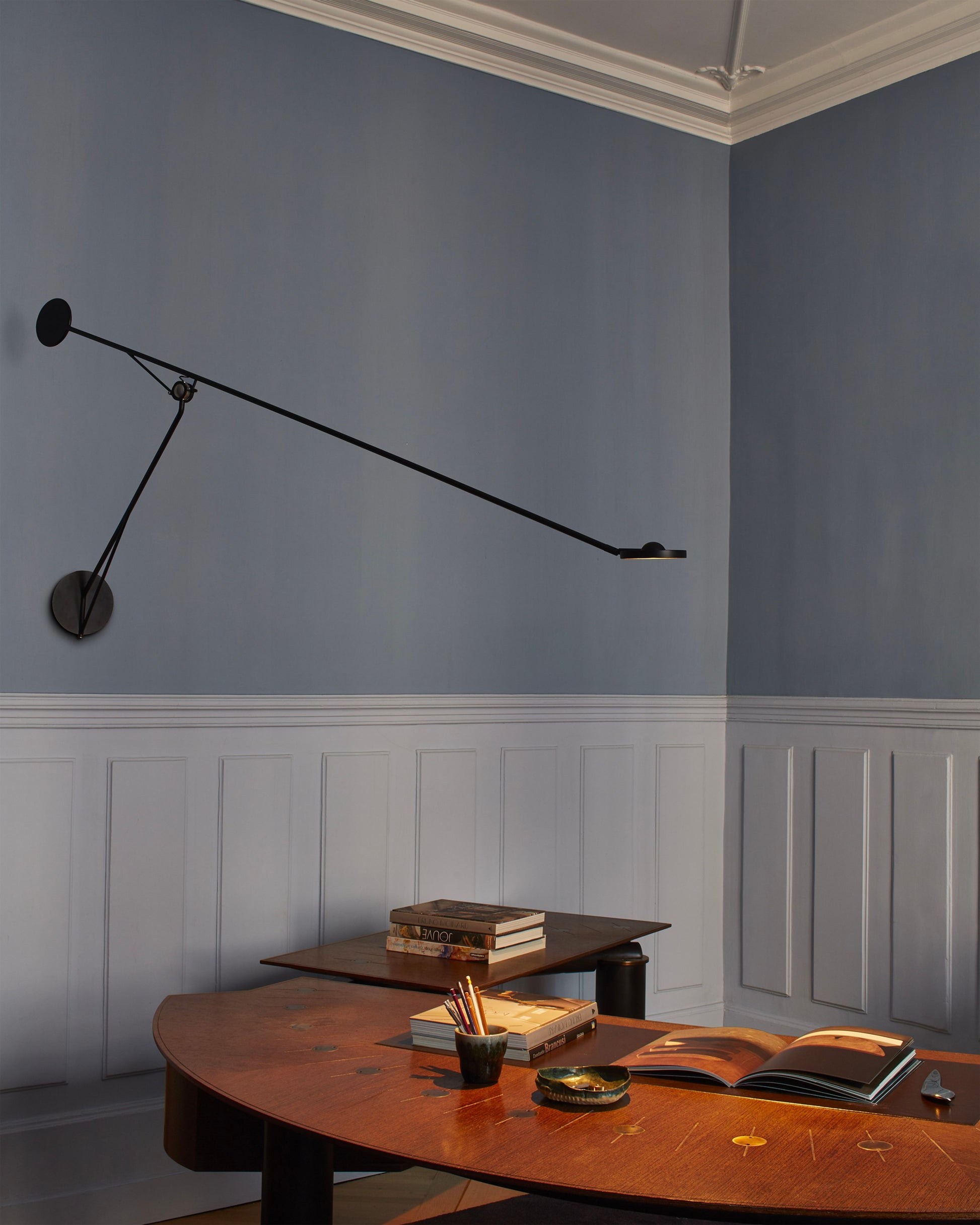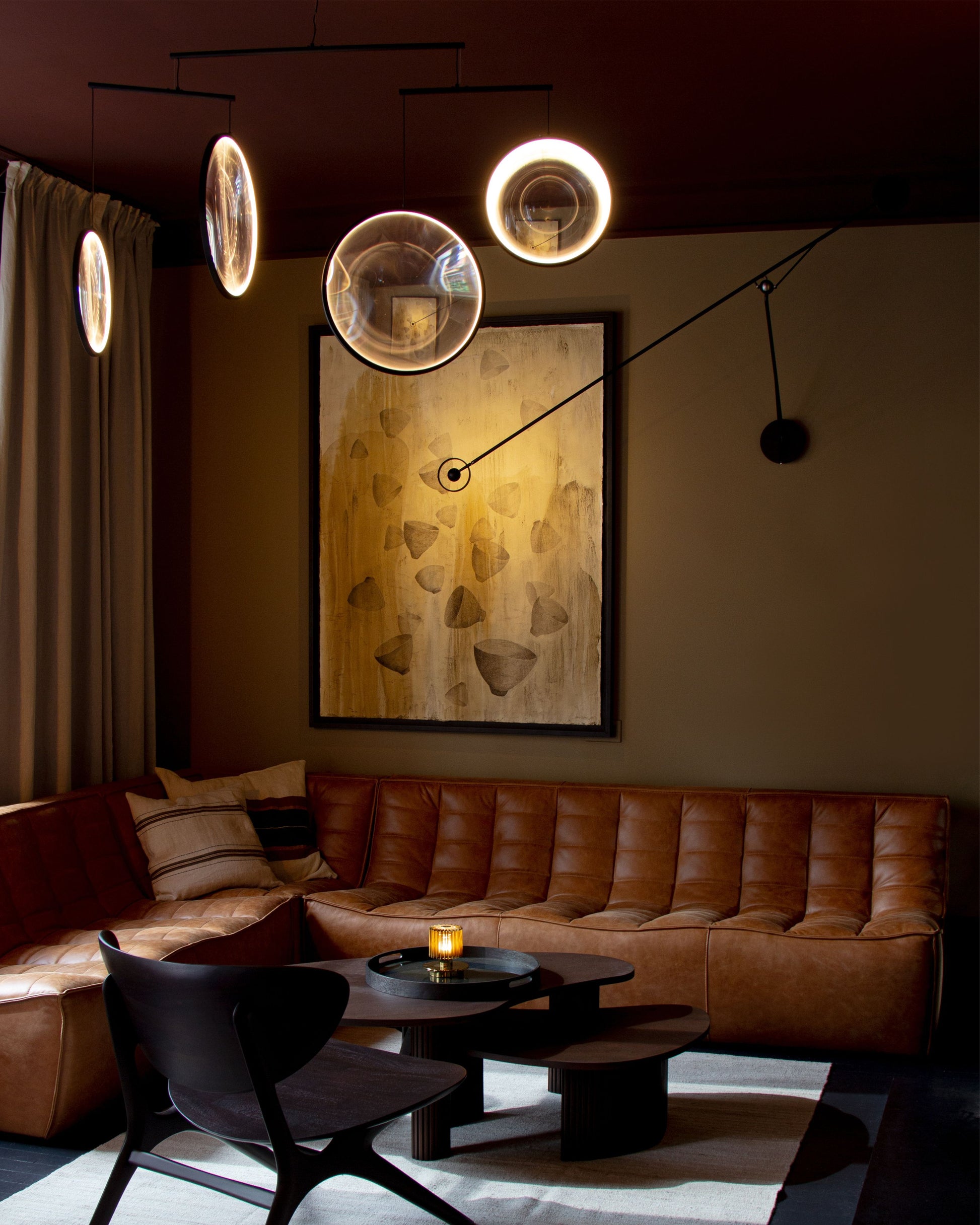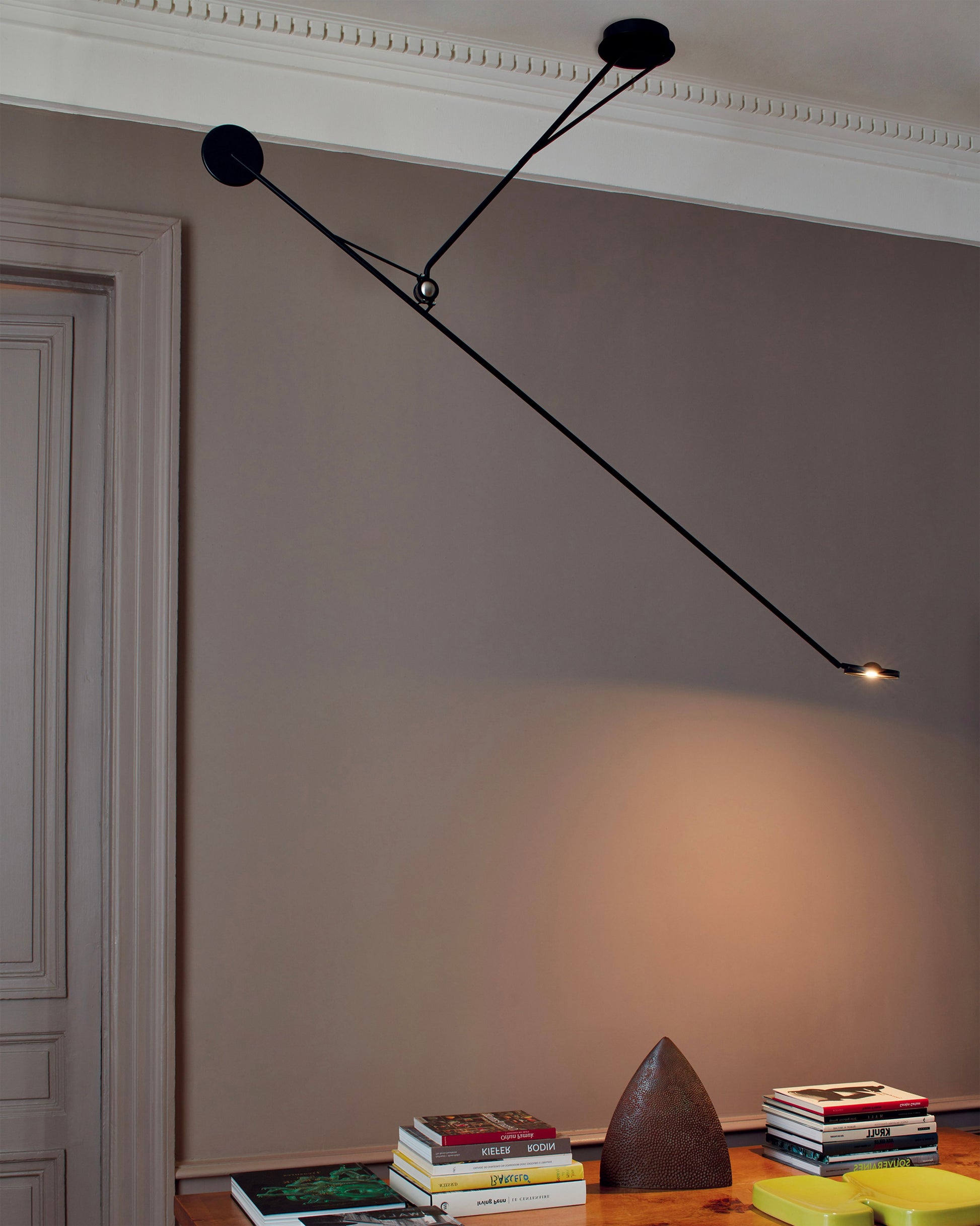 Het resultaat is een lichte, elegante lamp die moeiteloos lijkt te bewegen — alsof hij vanzelf zijn positie vindt, net zoals planeten in hun baan om het middelpunt.