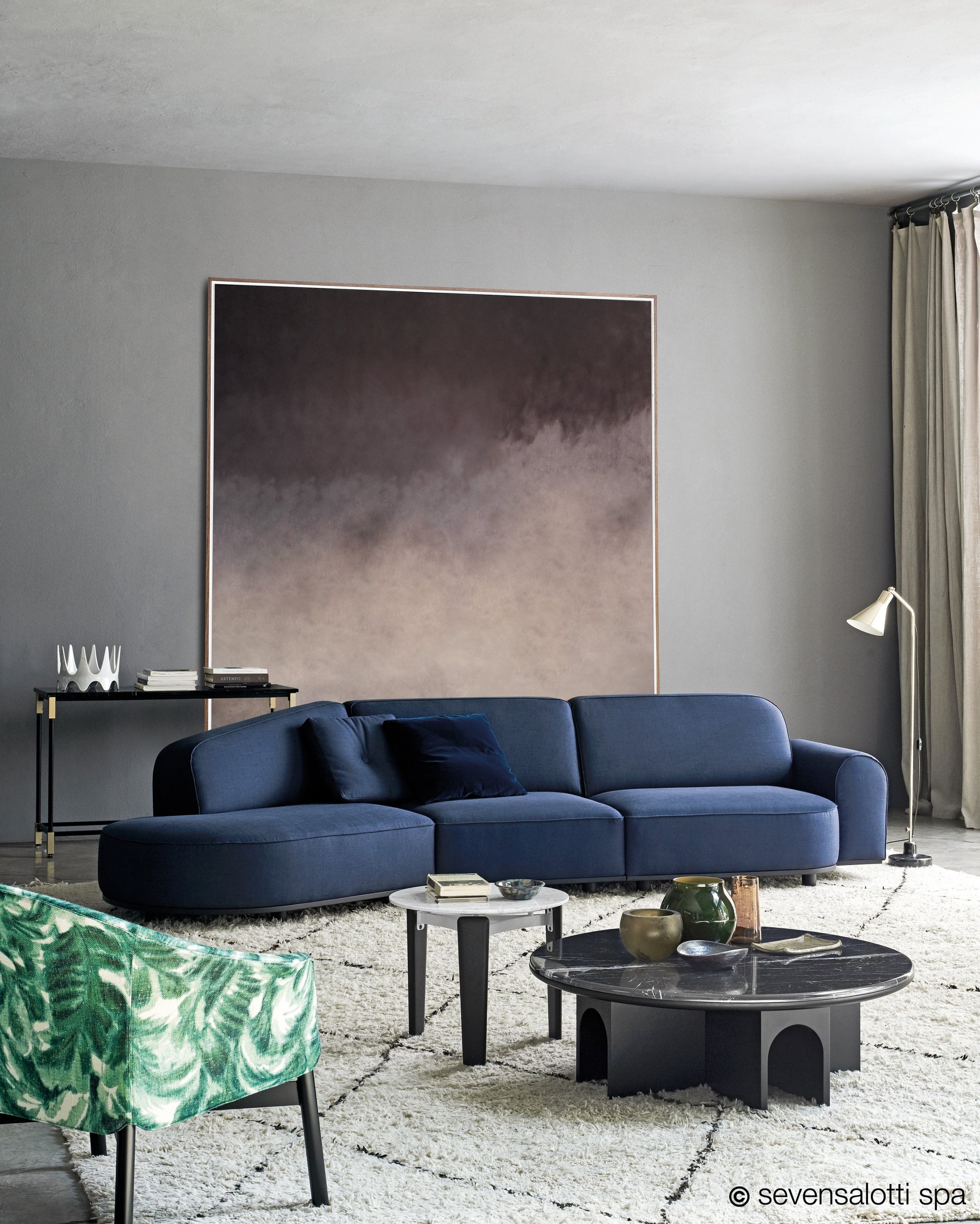 De Arcolor-collectie van Arflex kan worden gepersonaliseerd met verschillende stoffen, leersoorten en kleuren. Dankzij het modulaire systeem is het ontwerp eenvoudig aan te passen aan uw ruimte en stijl.