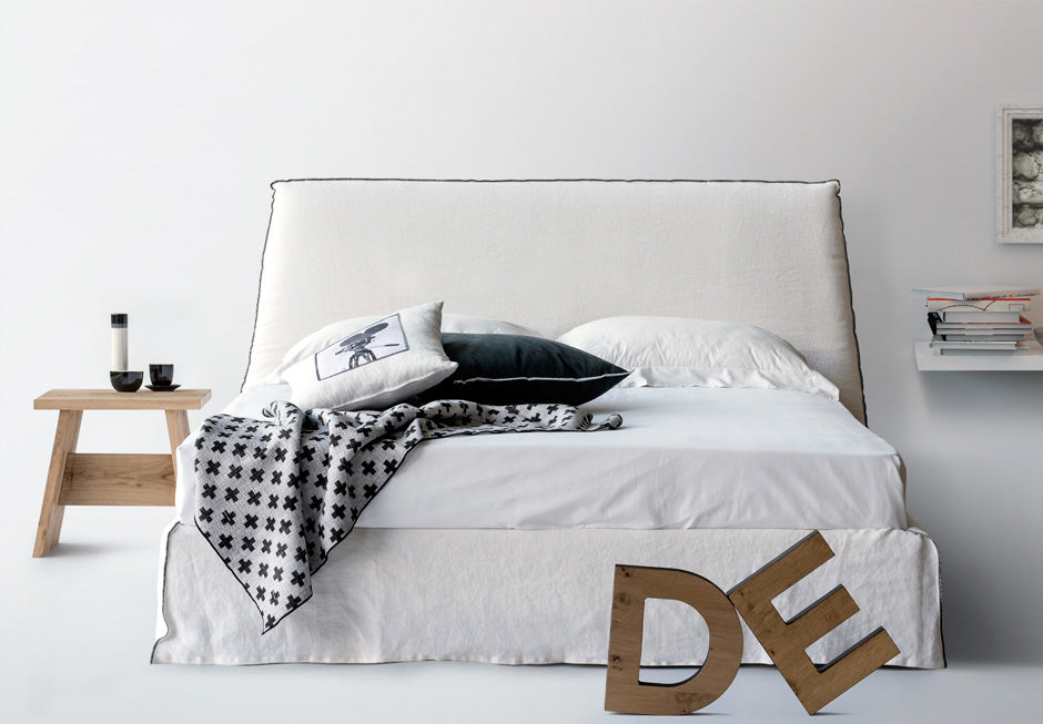 Aankleedbed met afneembare bekleding, geschikt voor matras 160×200 cm. Verkrijgbaar in diverse stoffen en kleuren, evenals in verschillende afmetingen, afhankelijk van het matras. Op verzoek is er opbergruimte beschikbaar.