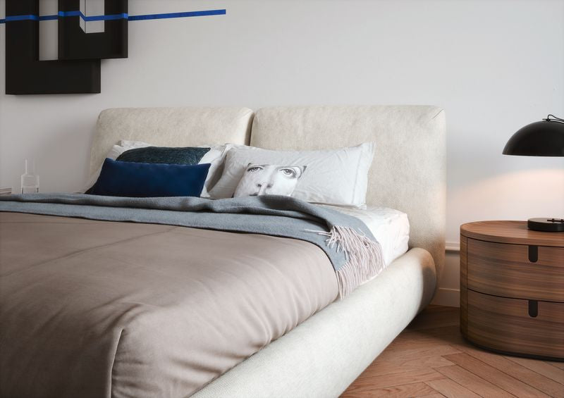 Het Midnight-bed, ontworpen door Ferriani.Sbolgi , heeft een elegant, eigentijds design met zachte, vloeiende lijnen. Het hoofdeinde met twee afgeronde kussens vormt een perfecte aanvulling op het gebogen, gewatteerde bedframe en zorgt voor een verfijnde en comfortabele uitstraling. Het Midnight-bed is verkrijgbaar in Queen- en King-formaat, met afneembare stoffen of lederen hoezen. Er is ook een versie met opbergruimte en een handmatig of gemotoriseerd liftsysteem voor extra gebruiksgemak.