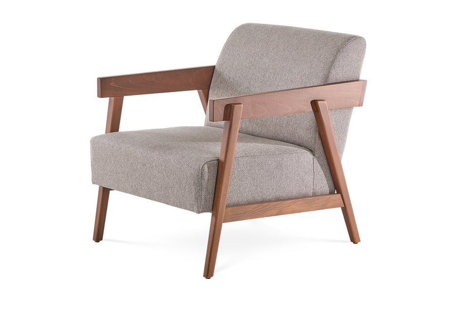 Fauteuil met massief houten frame. Ook verkrijgbaar in andere hout- en stofkleuren met afmetingen 73x84x83 cm.
